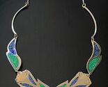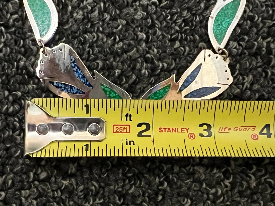 - Vintage Alpaca Mexico Crushed Turquoise Gemstone Silver Necklace