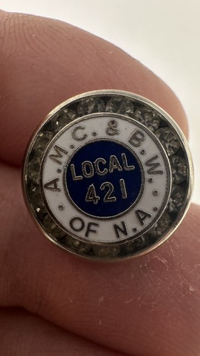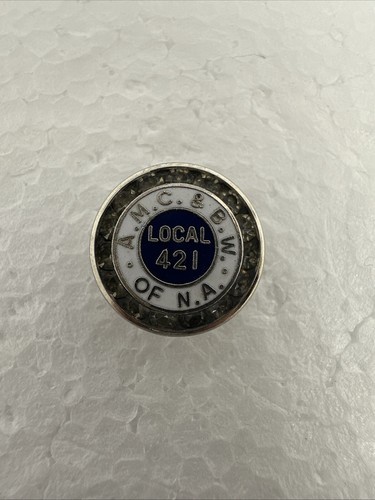 This vintage AMC BW of NA PIN UFCW AFL-CIO meatcutters union Local 421 is a rare find for any collector of historical memorabilia. The pin is a unique piece that represents the trade union movement and the meatcutters industry in the United States.