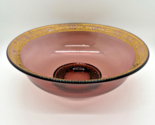 Vintage Amethyst Glass Console Bowl w/ Gold-Encrusted Floral Border, 9.5" (1930s