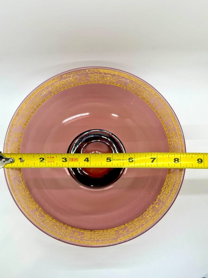 ? Vintage Amethyst Glass Bowl with Gold Encrusted Floral Rim ?