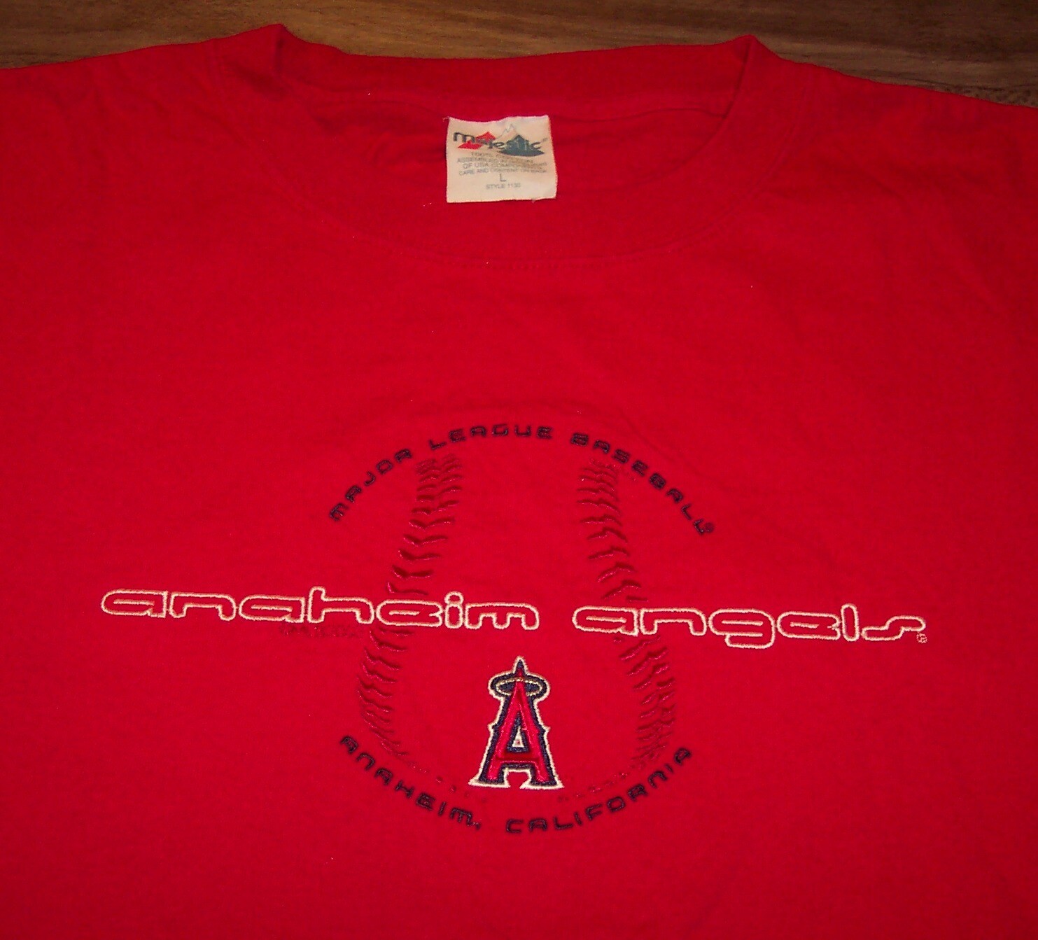 - VINTAGE ANAHEIM ANGELS Embroidered MLB BASEBALL T-Shirt Majestic MENS LARGE