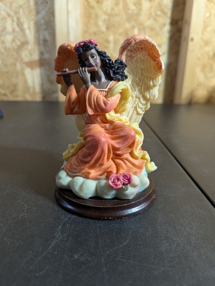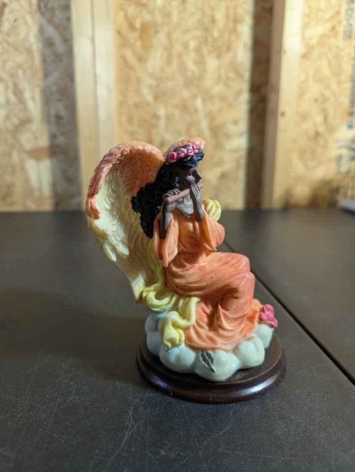 - VINTAGE ANGEL FIGURINE - SITTING PLAYING FLUTE - WINGS SPREAD -5" TALL