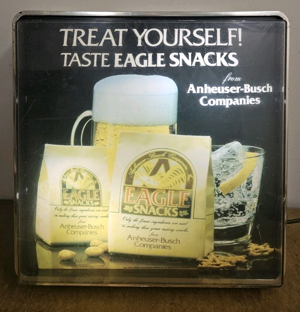 - Vintage Anheuser Busch Eagle Snacks Light Up Sign 16”x 16”