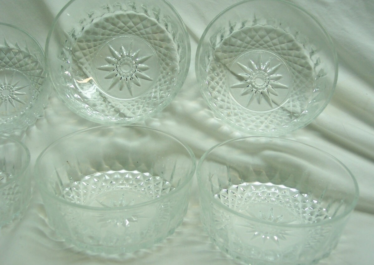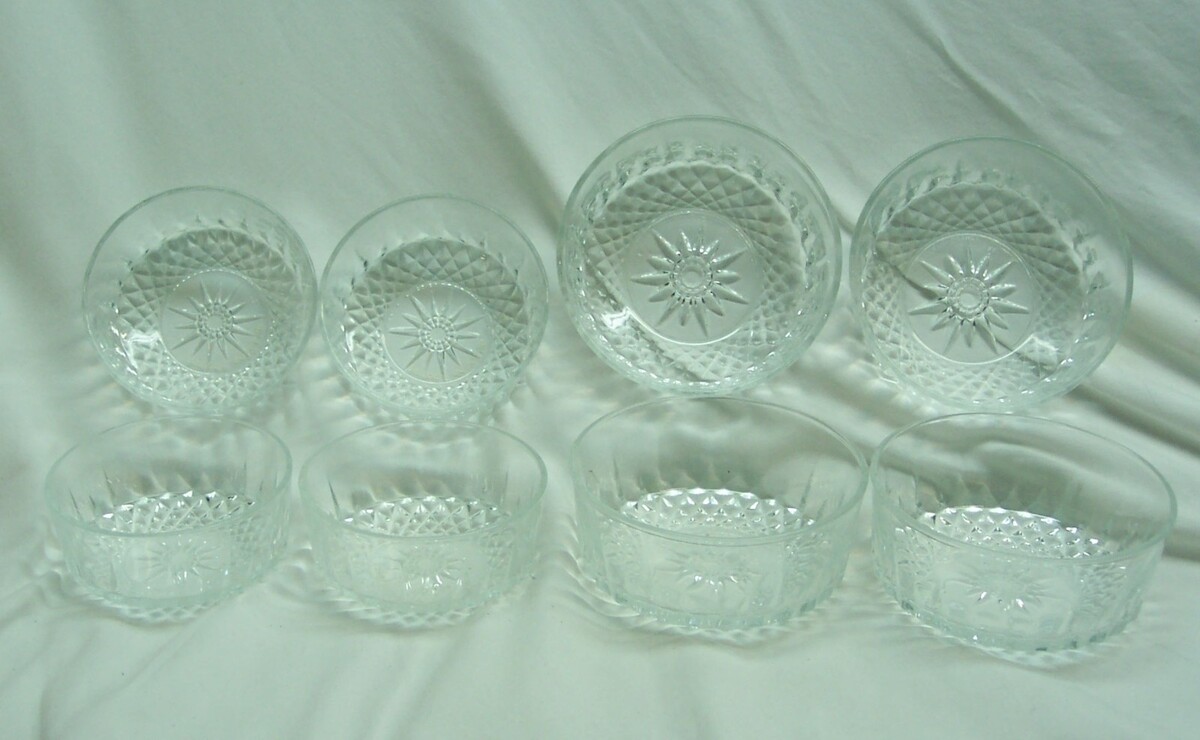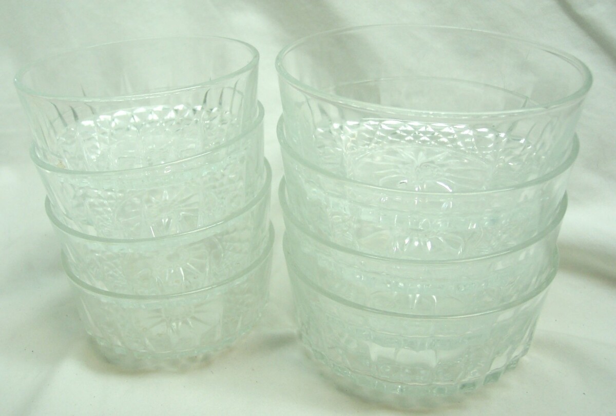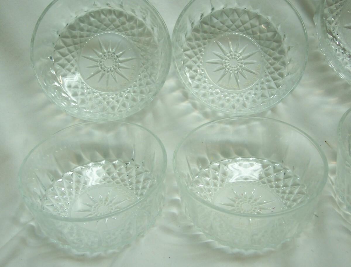 - Vintage Arcoroc France GLASS BOWLS 4" and 5" Starburst Design SET of 8