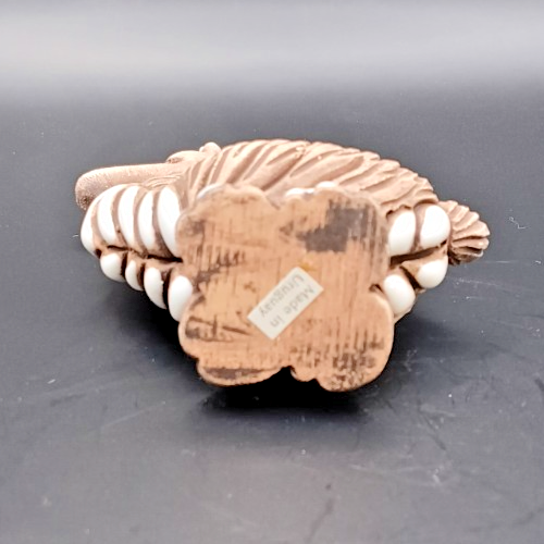 The Vintage Artesania Rinconada Llama/Alpaca figurine is a beautifully crafted piece made in Uruguay. This handmade clay figurine features a multicolor design with a glazed and matte finish, standing at approximately 3 inches tall and 1-1/2 inches wide. The unique character of this collectible item includes intricate details of a llama or alpaca, perfect for animal lovers and collectors alike. The late 20th-century piece adds a touch of charm to any decor with its original design and quality craftsmanship.