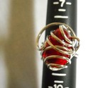- VINTAGE ARTISIAN HAND MADE WIRE WRAPPED RED GLASS GEM DESIGN RING US SZ 9 - 9.5