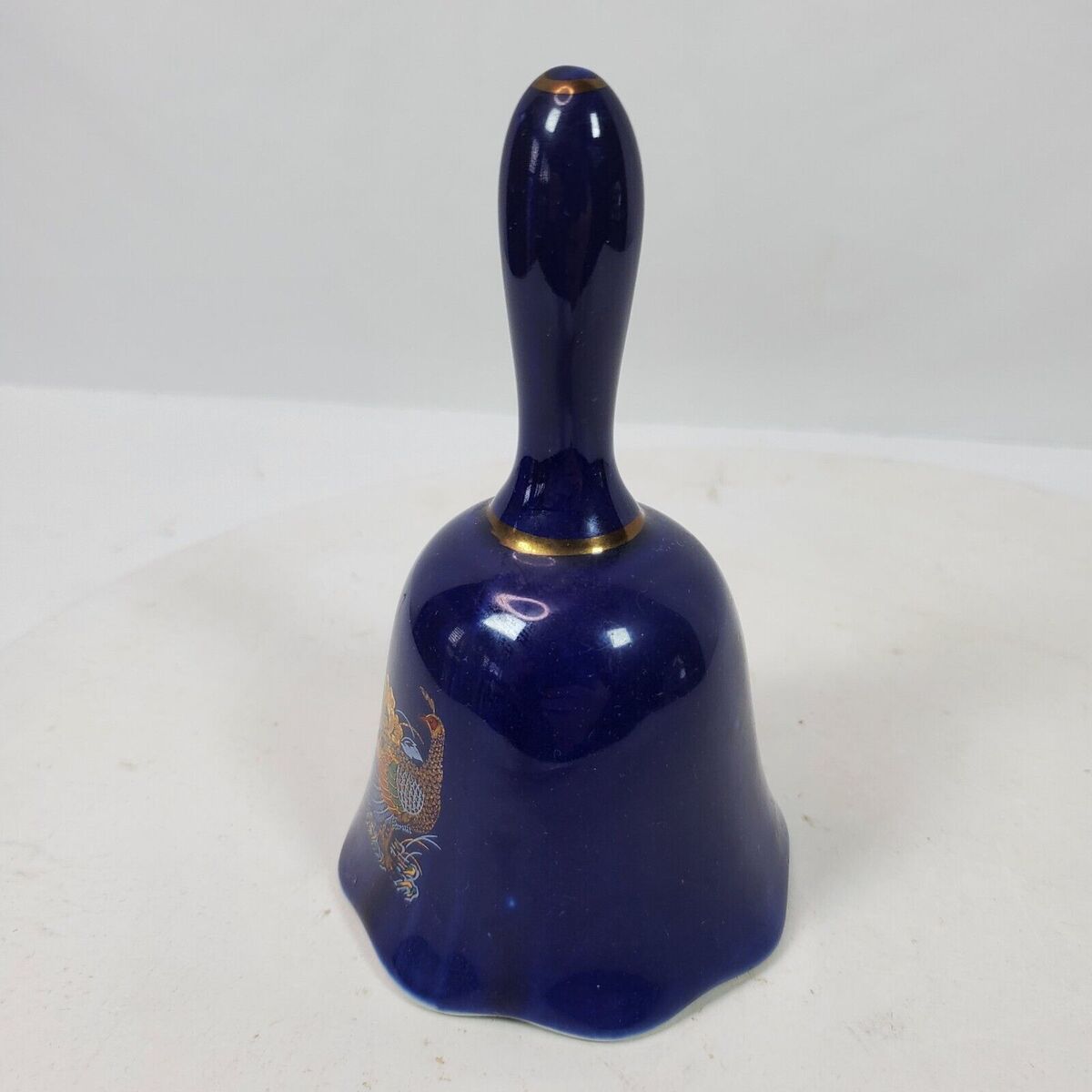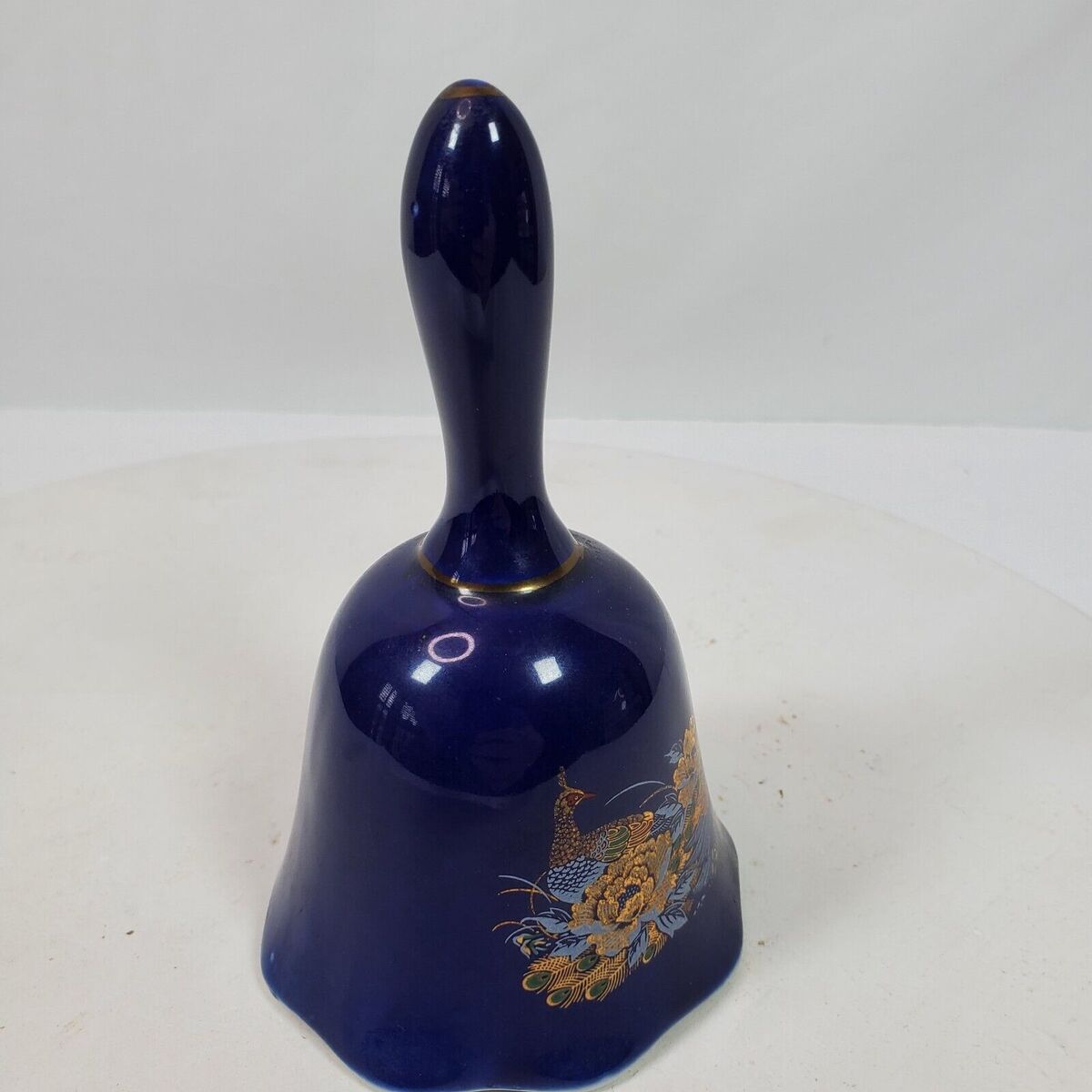 - Vintage Asian Peacock Cobalt Blue Hand Bell 5.5 Inch Long