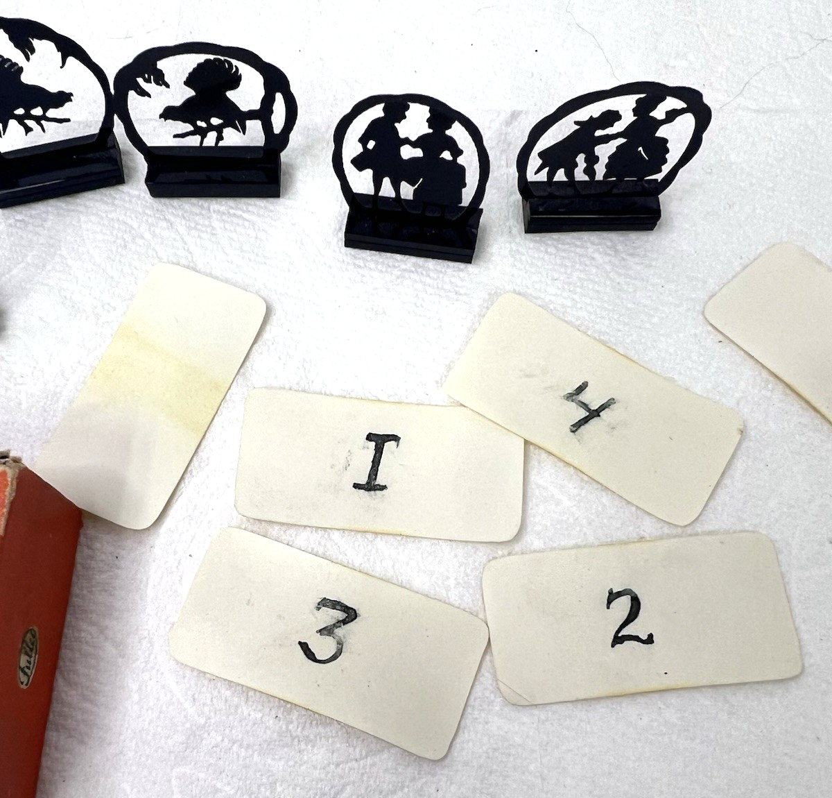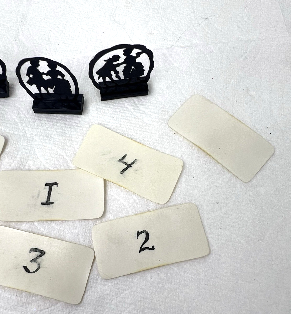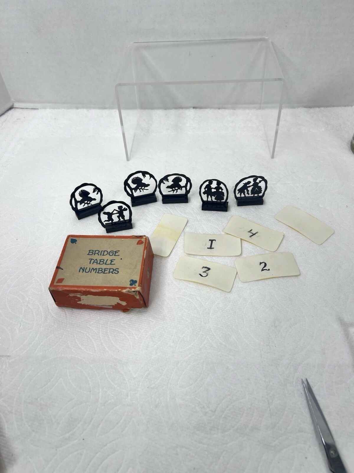 - Vintage Austria Bridge Table Numbers Set Silhouettes Dancers Birds Original