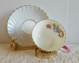 - Vintage Aynsley Spring Blossom Swirl Design Gold Trim Tea Cup and Saucer