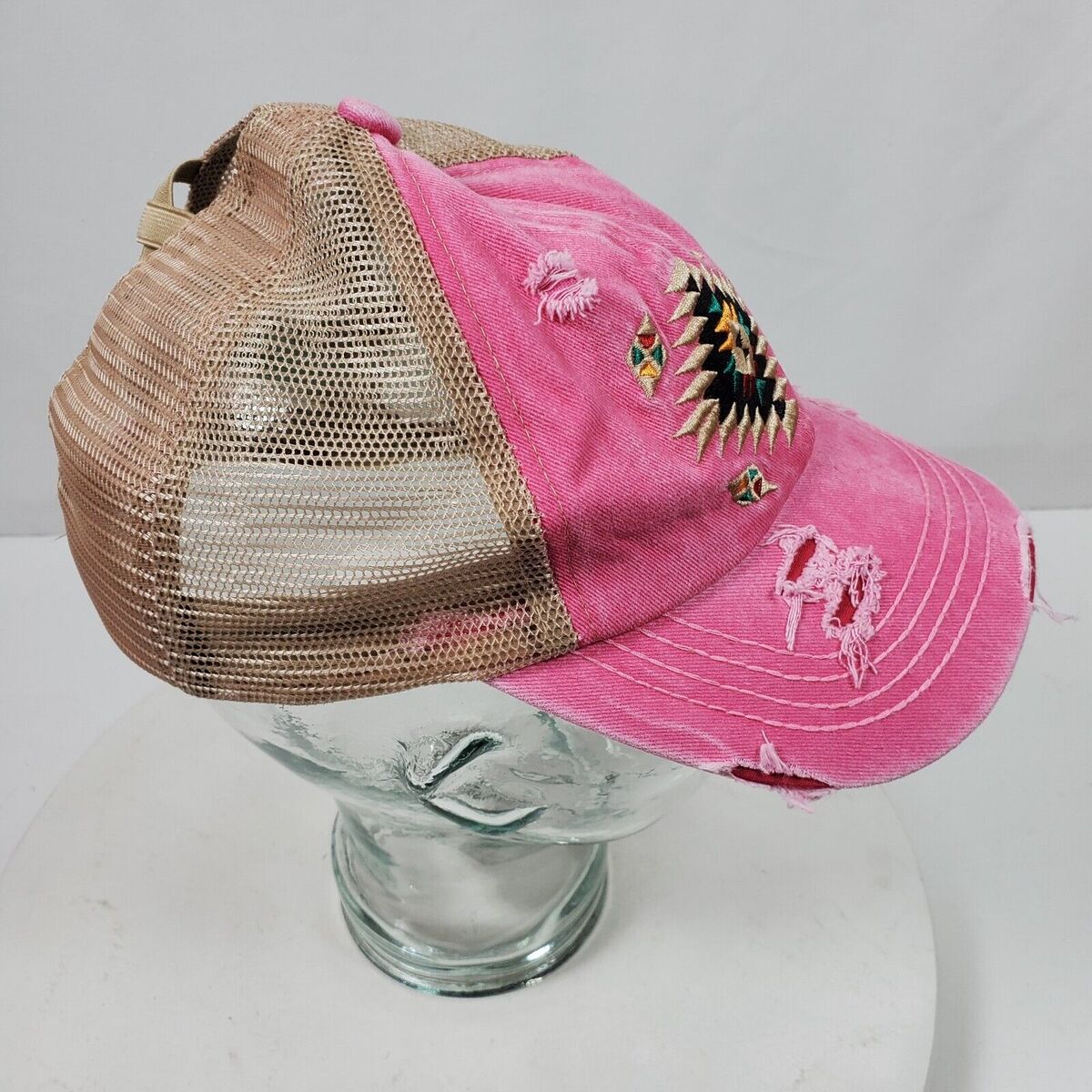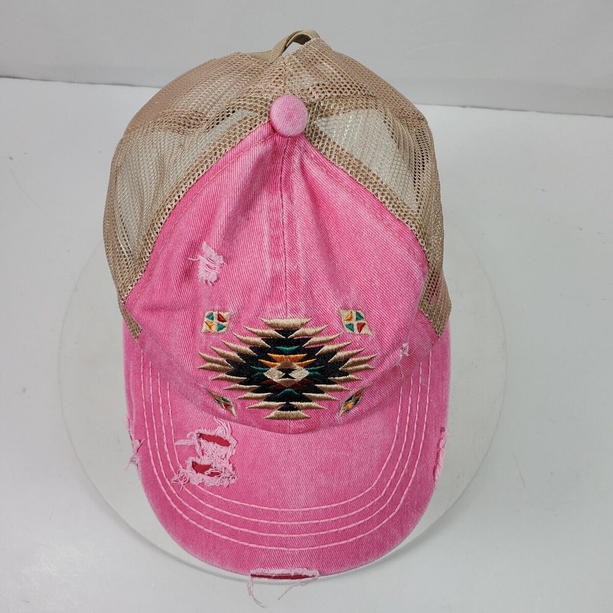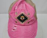 - Vintage Aztek Pink Distressed Hat Cap w/ Embroidery One Size