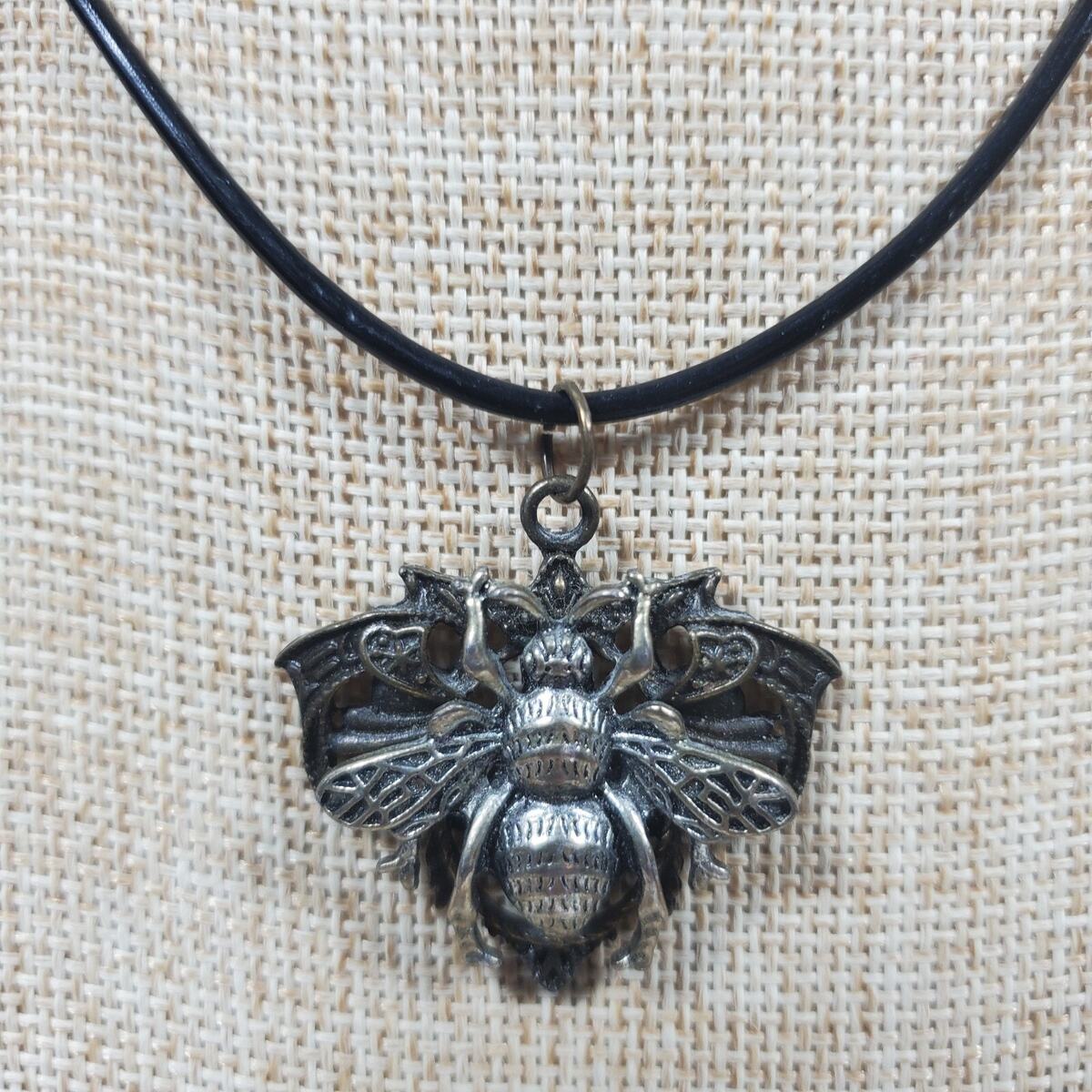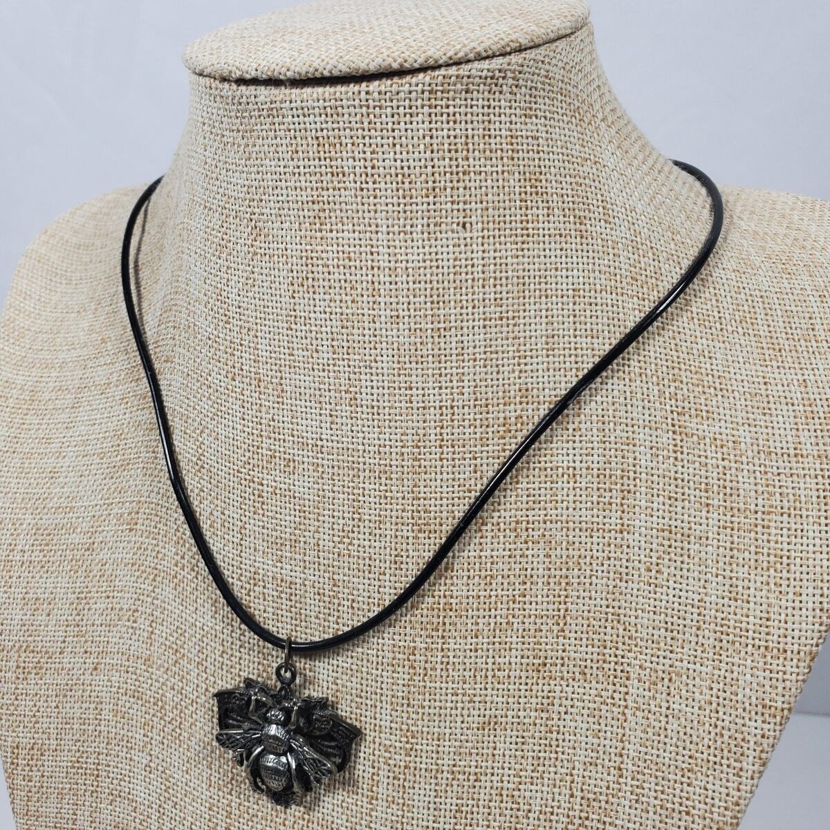 - Vintage BOHO Queen Bee Pendant (1.25") Necklace on 20 Inch Black Rope