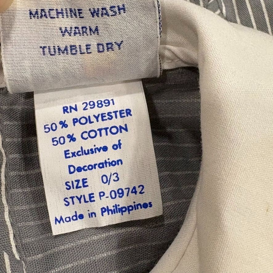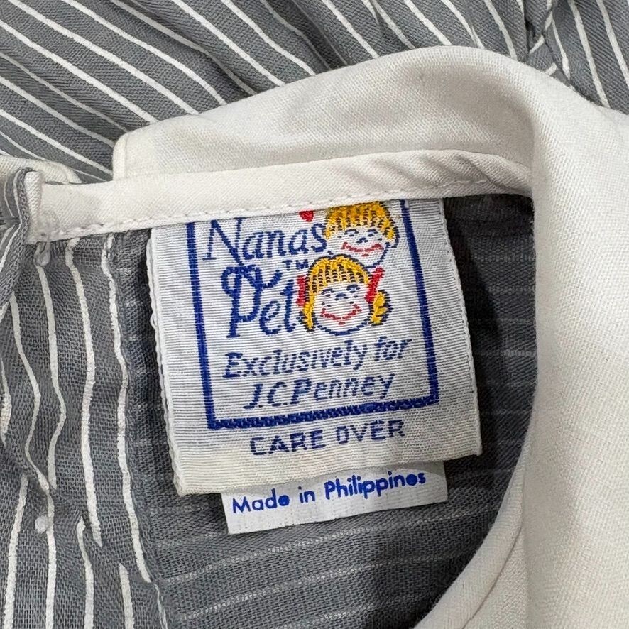 - Vintage Baby Dress Nanas Pet Gray & White Striped With Train Applique 0/3 Months
