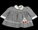Vintage Baby Dress Nanas Pet Gray & White Striped With Train Applique 0/3 Months