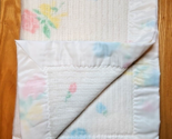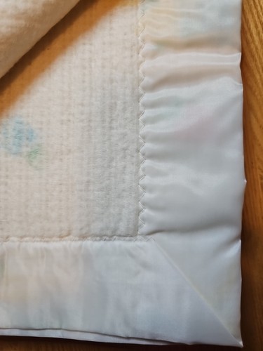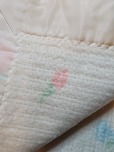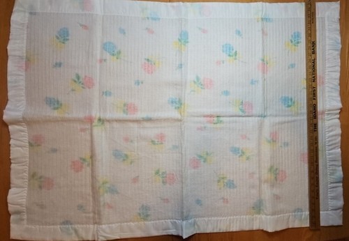 - Vintage Baby Pepperell Blanket Waffle Weave White Pastel Flowers Iced Trim 1960s
