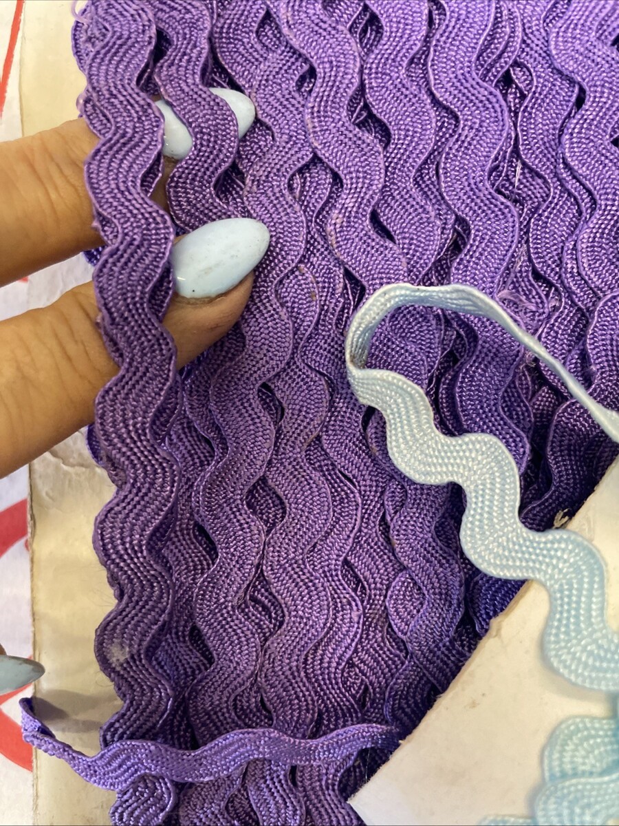 This product is a vintage baby blue or purple RickRack ribbon trim measuring 1/2 inch in width.