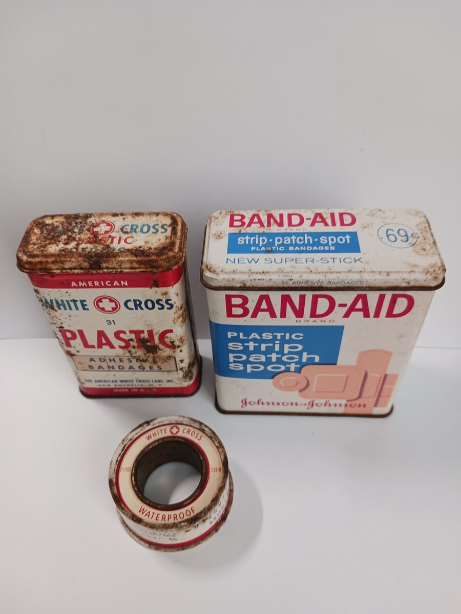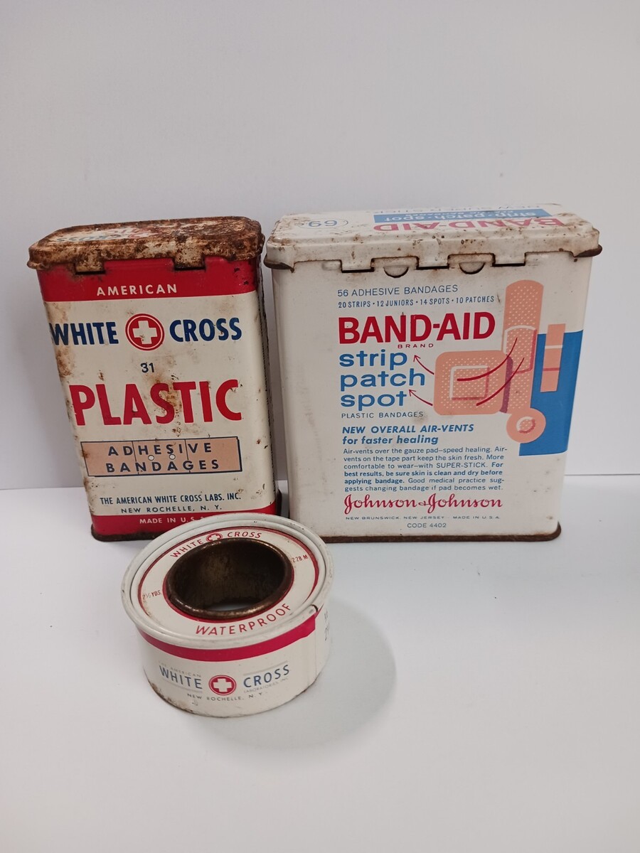 - Vintage Band Aid Tin, American White Cross Adhesive Bandages & Adhesive Plaster