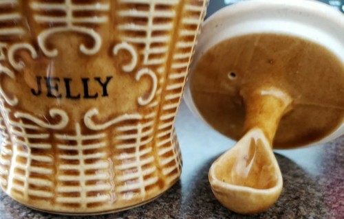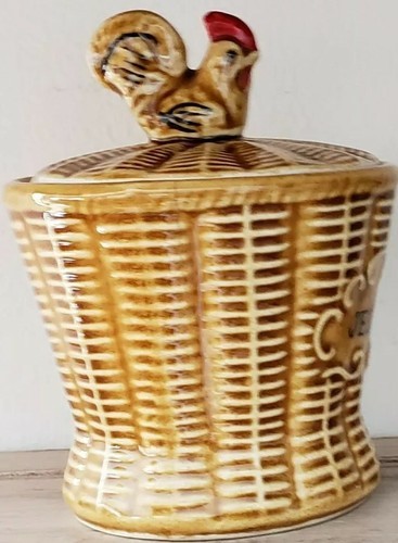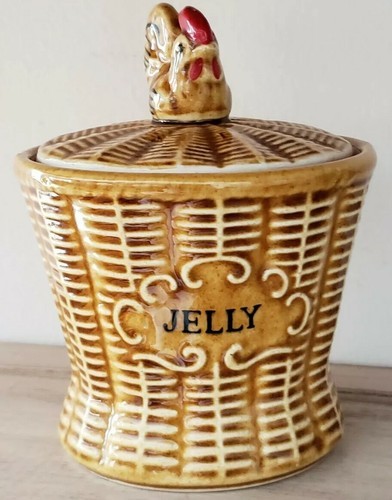 - Vintage Basket Weave Kitchen Ceramic Jelly Jar w/Built In Spoon Japan