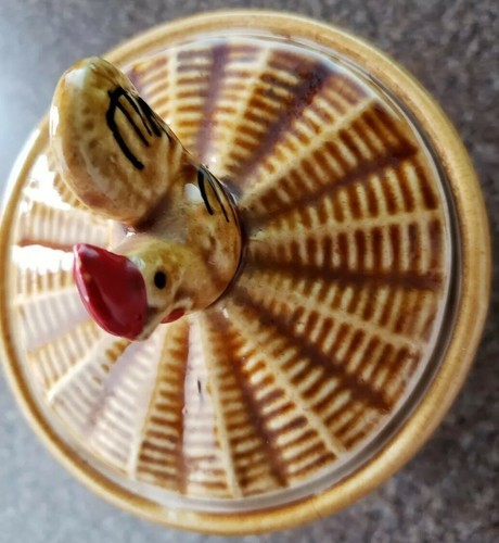 Rooster decoration on top of lid