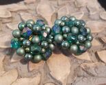 - Vintage Beaded Button Clip On Earrings – Green Faux Pearl Cluster Jewelry