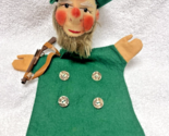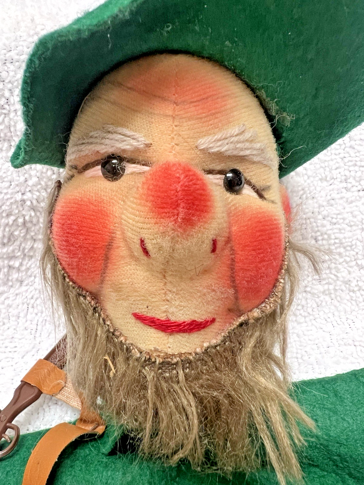 Vintage Beaded Hunter w Gun Hand Puppet Sculpted Felt Face Hand Painted in clean shape about 12 inches long