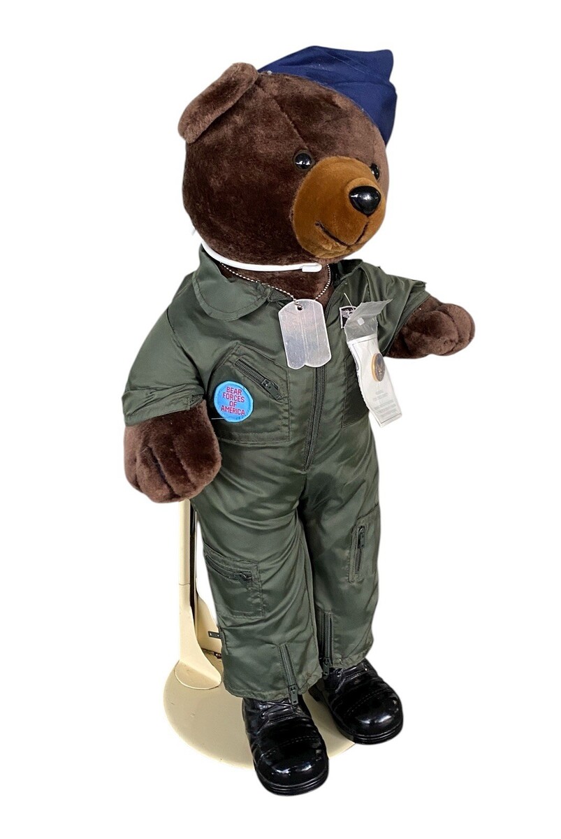 Vintage Bear Forces of America Plush Bear with Metal Stand Air Force Badge Tag