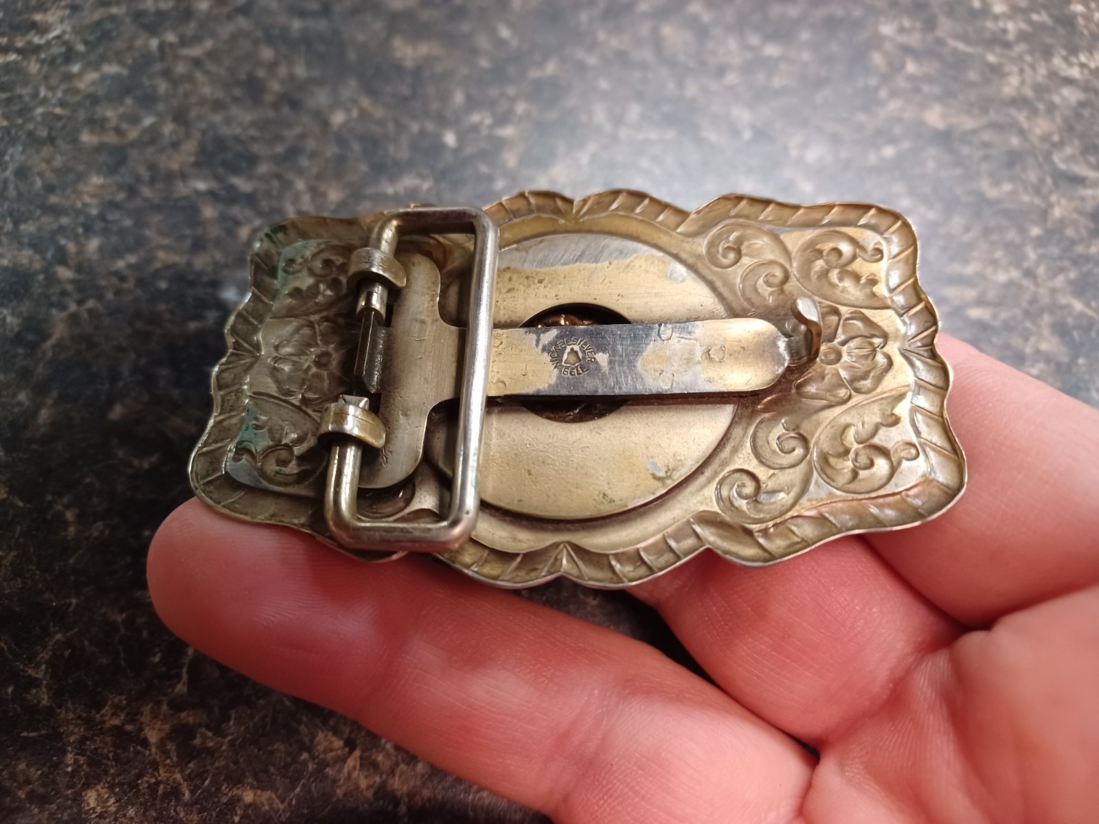 - Vintage Bell Trading Post Nickel Silver Cowboy Bronco Busting Belt Buckle