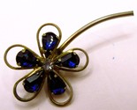 For sale is vintage flower-shaped brooch with blue stones. It features teardrop-shaped blue rhinestones set in a coiled wire metal design, with a long stem. Some wear but overall good condition considering age. Please examine the photos to confirm item details and to assess the conditions yourself. Feel free to message me if you have any questions or comments. Also be sure and check out the other items I have for sale and message me if you want to combine orders. Thank You.