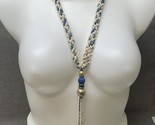 - Vintage Blue White Handmade Beaded Tassel Necklace KG JD