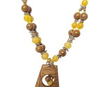 - Vintage Boho Handcrafted Stone & Yellow Beaded Necklace With Geometric Pendant