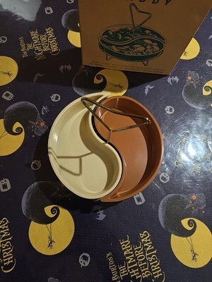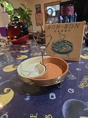 Vintage Bon-Bon Caddy Brass Plated With 2 Teardrop Snack Trays MCM Ying Yang
