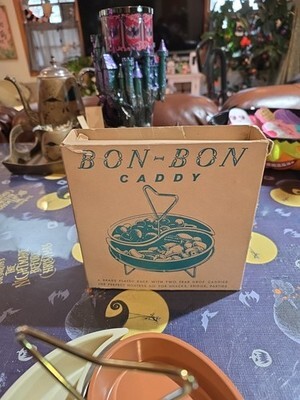 - Vintage Bon-Bon Caddy Brass Plated With 2 Teardrop Snack Trays MCM Ying Yang