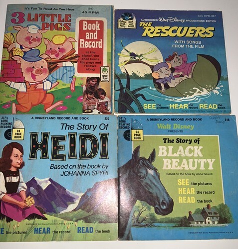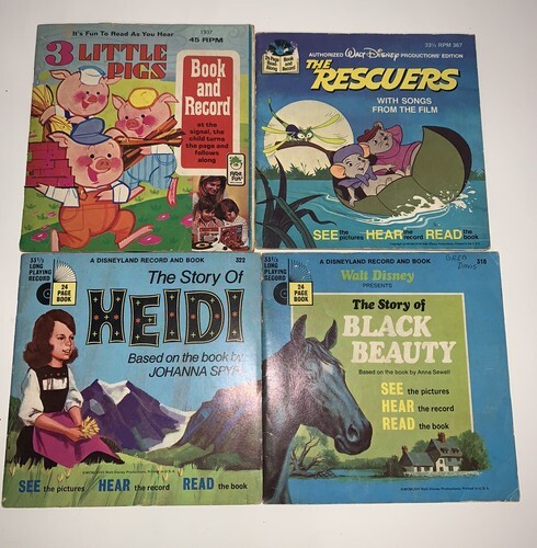- Vintage Book & Record Lot Of 4 The Rescuers 3 Little Pigs Heidi Black Beauty