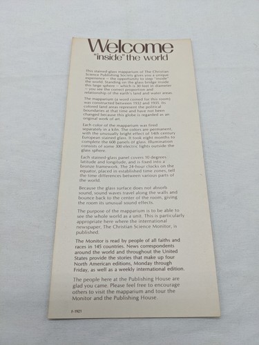 - Vintage Boston Massachusetts "inside" The World Mapparium Welcome Brochure
