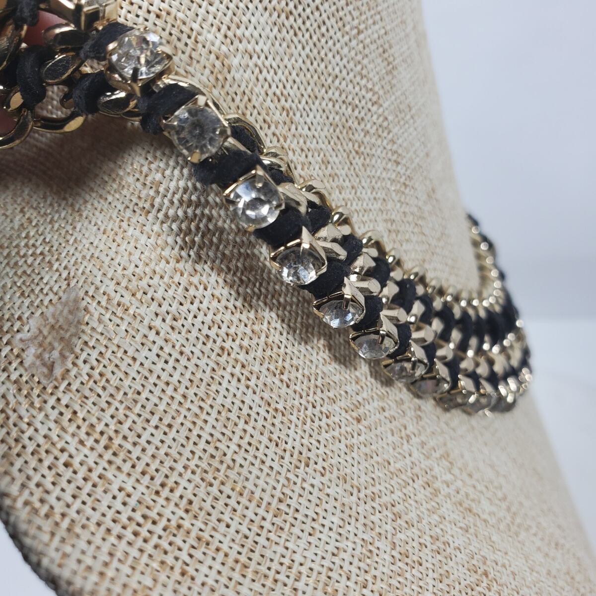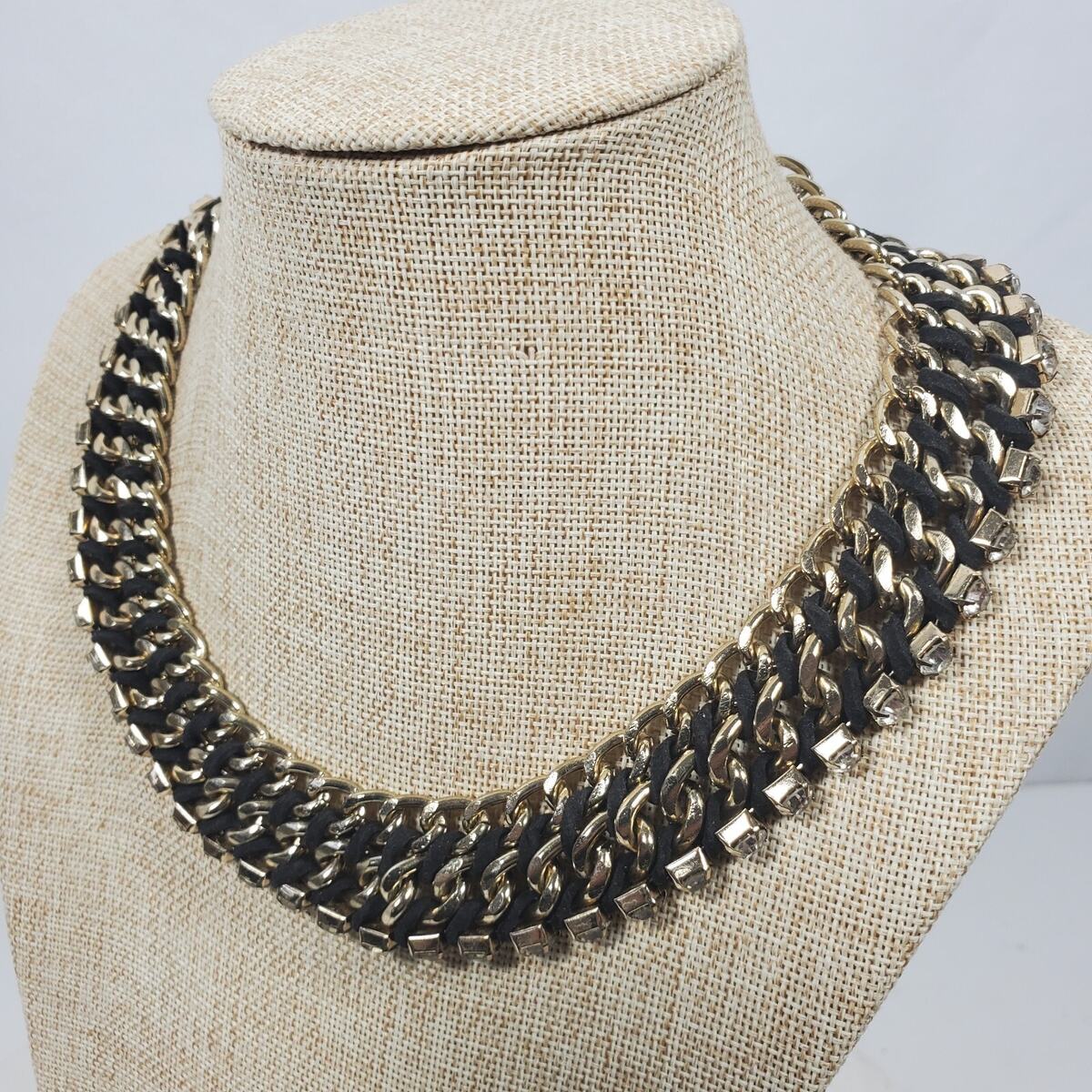 - Vintage Braided Statement Necklace 18 Inch Gold Tone & Black