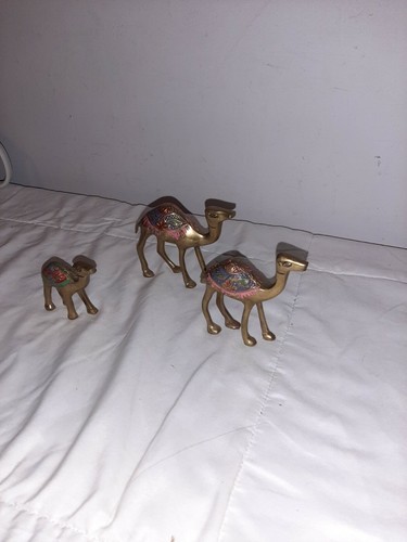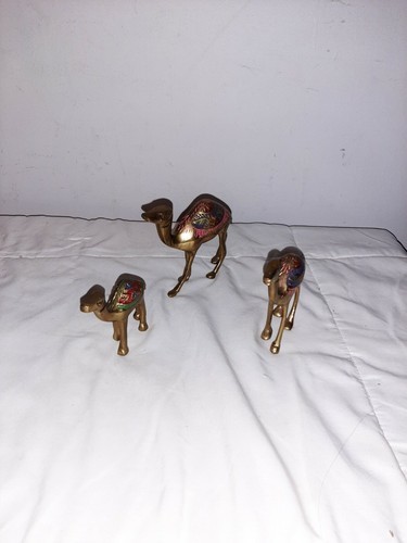 - Vintage Brass Camels Miniature Figurines, Lot Of 3 Hand Painted Nativity Scene