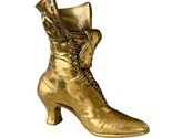 - Vintage Brass Cast Metal Victorian Ladies Boot Vase Doorstop Weathered 10” Tall