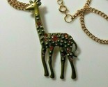 - Vintage Brass Look Rhinestone Giraffe Pendant Necklace 31" long
