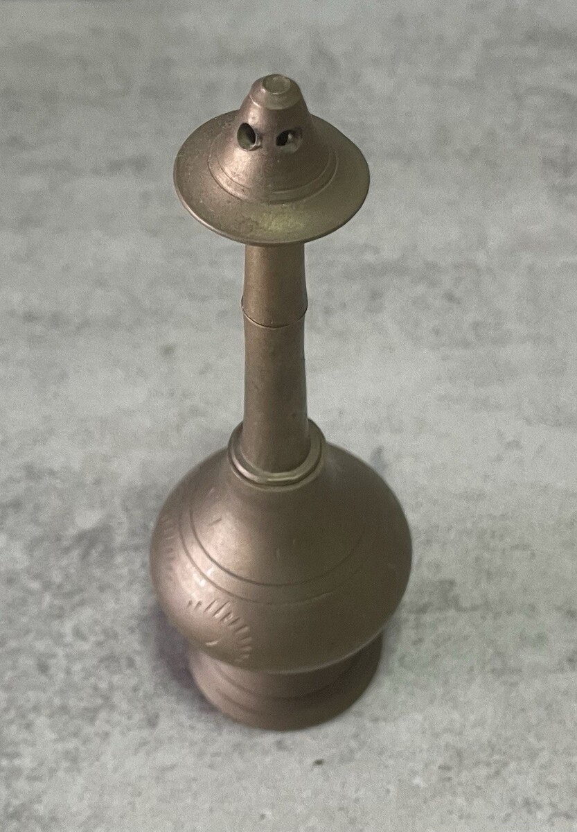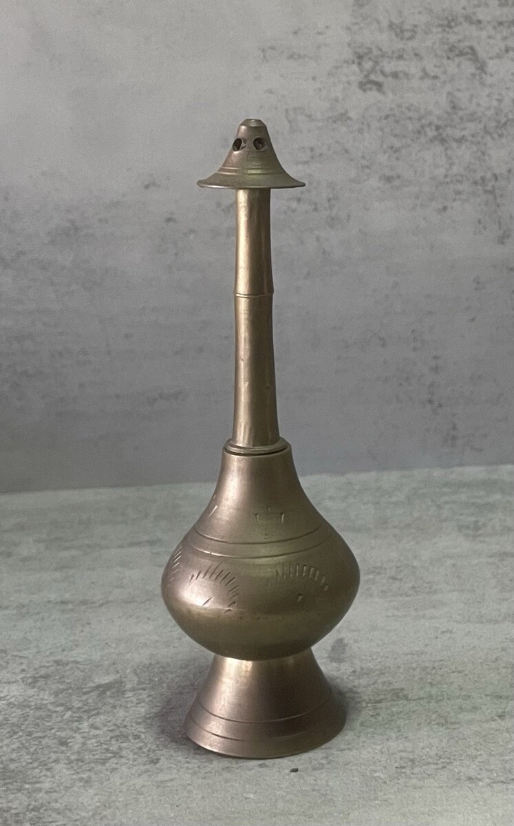 - Vintage Brass Middle Eastern Rosewater Perfume Bottle – Etched, 2-Piece