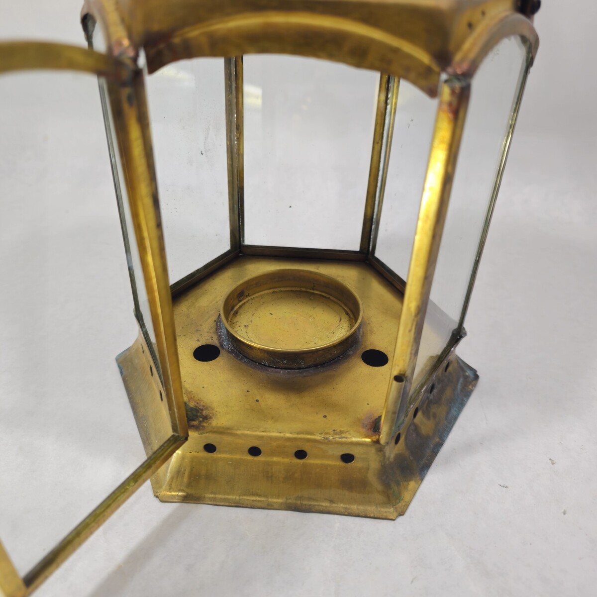 Vintage Brass Nautical Lantern Hexagon 12 1/2" Tall Plus Handle