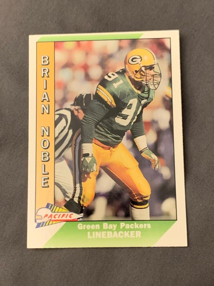 Celebrate a legendary Packers defender with this Brian Noble Pacific Football Card. A key figure in the Green Bay Packers? defensive lineup during the 1980s and early 1990s, Noble was known for his tenacity and leadership on the field. This vintage NFL trading card is a must-have for any serious collector or Green Bay fan.