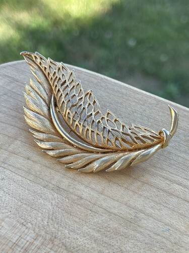 - Vintage Brooch Pin Gold-Tone Leaf Feather