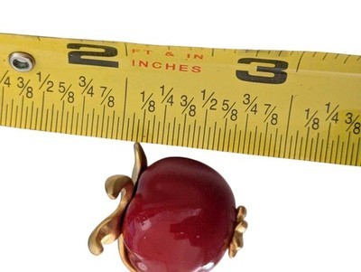 - Vintage Brooch Red Enamel Apple Gold Tone Stem Signature Pull Release Sixties