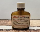 The product is a vintage brown glass bottle labeled as CARTER'S RYTOFF INK ERADICATOR, made in the United States. The bottle is approximately 2/3 full and does not appear to be handmade. This collectible item would be a unique and nostalgic piece for pen and writing instrument enthusiasts, showcasing a piece of history from the United States.