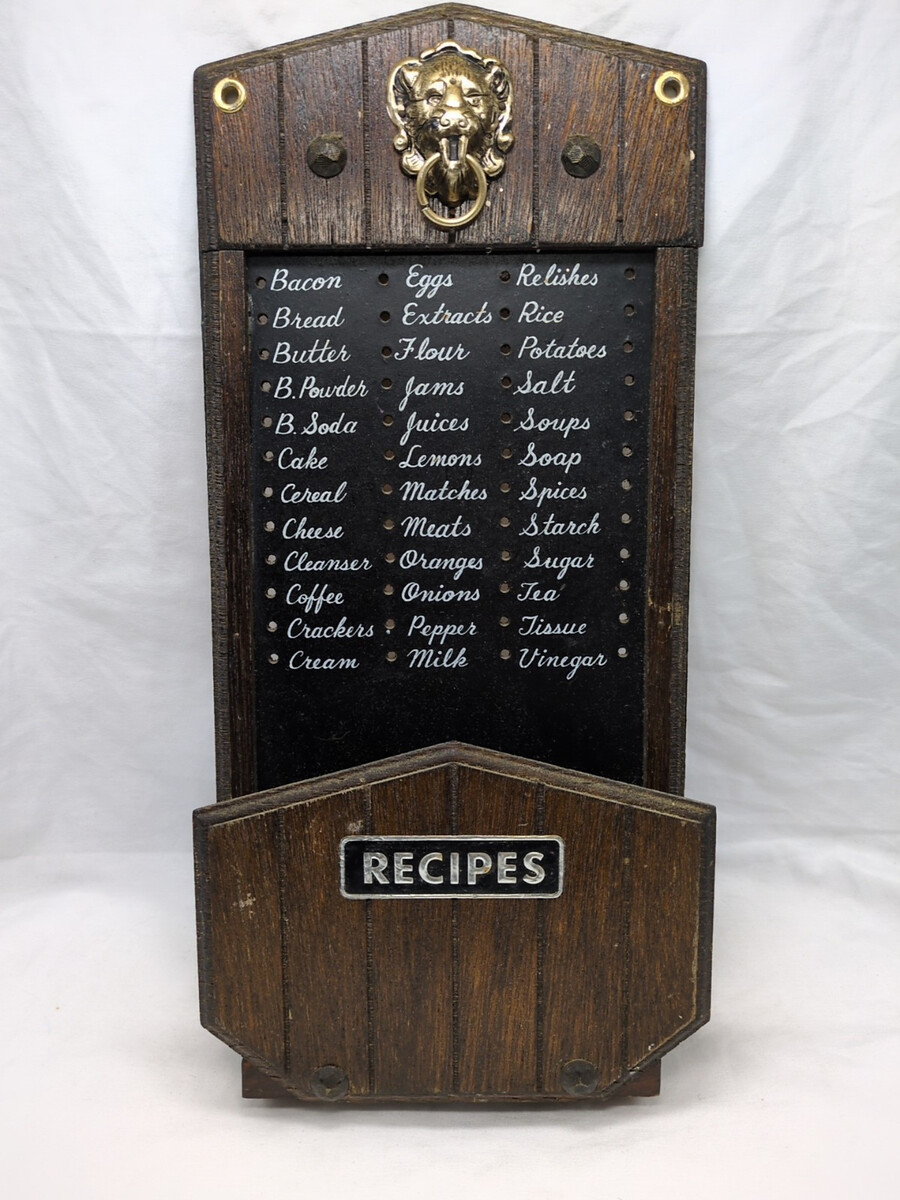 Vintage Brown Recipes Holder With Lion Doorknocker 6" 1 3/4" X 12"