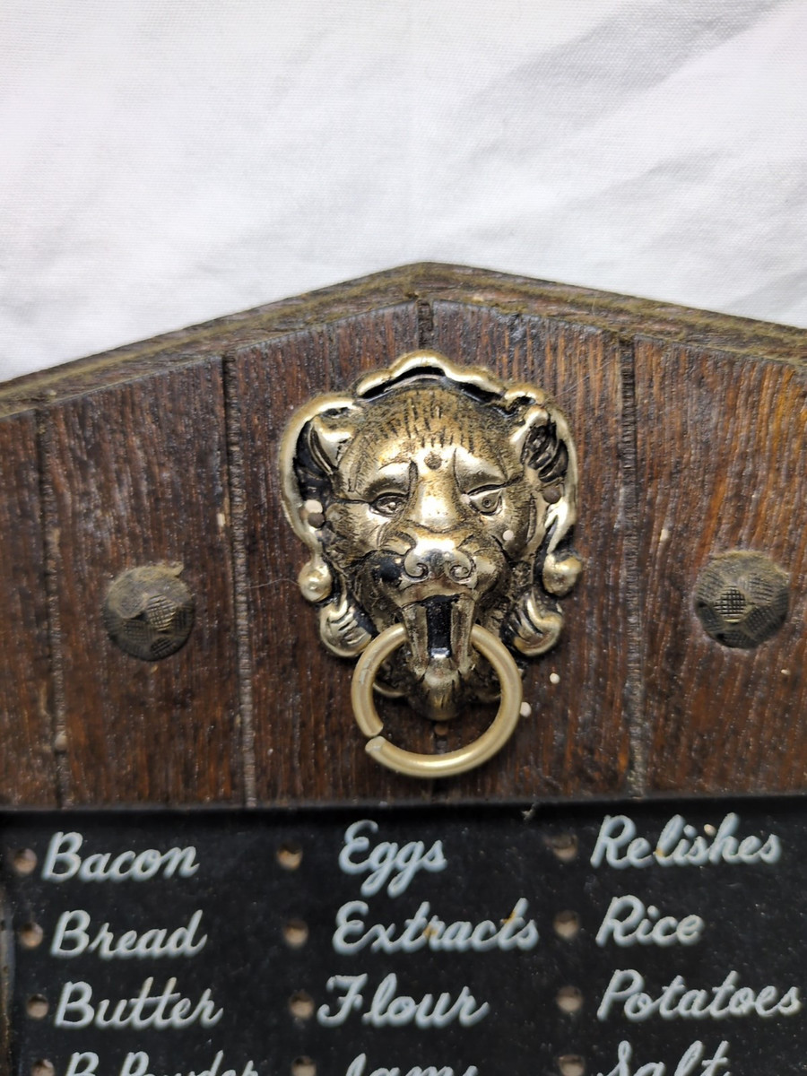 - Vintage Brown Recipes Holder With Lion Doorknocker 6" 1 1/2" X 11 1/2"