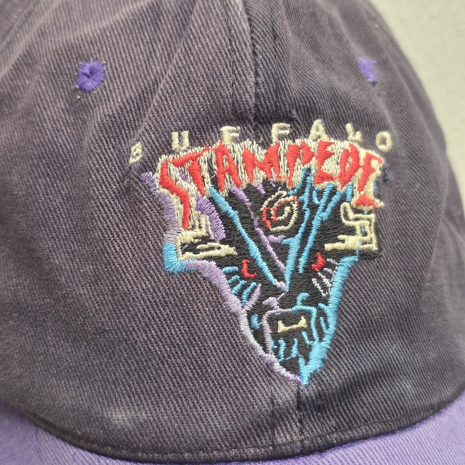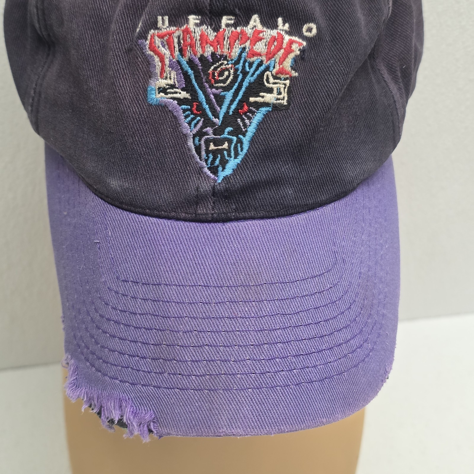 Vintage Buffalo Stampede Hat Black Purple Snapback RARE - Damaged. The bill has some damage and the back Snapback is missing some snaps. Some spots and other wear, see images for condition. Images show actual item that will ship.