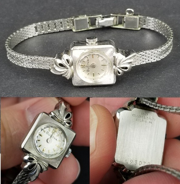 10k WHITE GOLD rgp bezel. Beautiful vintage women's BULOVA watch. Purchased at an estate sale.