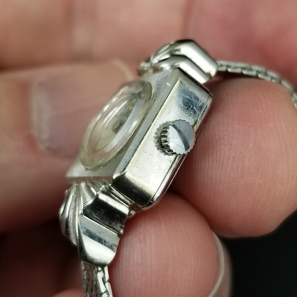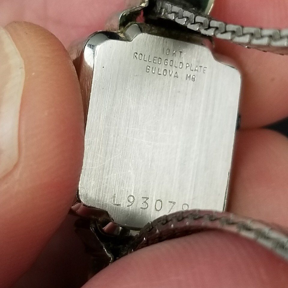 - Vintage Bulova womens 10k WHITE GOLD rgp bezel quartz Wrist Watch M8 1968