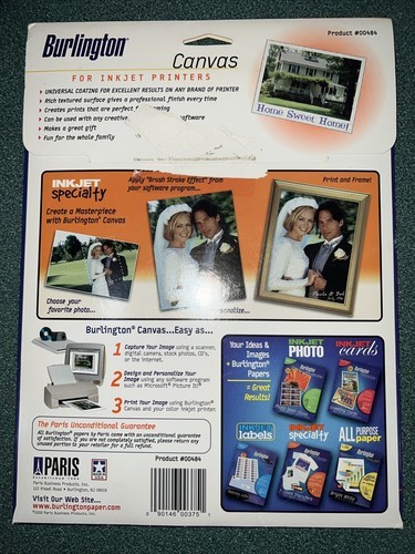 The Burlington brand is known for its durable and reliable products, and this pack is no exception. While the paper size is standard, the model number is 00484 and the country/region of manufacture is unknown, this pack is a great choice for anyone in need of inkjet printing. Whether you're a student, professional, or hobbyist, this vintage pack of Burlington canvas inkjet printer sheets is sure to meet your needs.