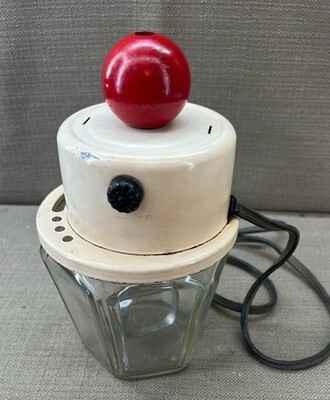 3730. Vintage Electric Butter Churn / Mixer ? Glass Jar Egg White Beater ? Works ? Red Knob Handle